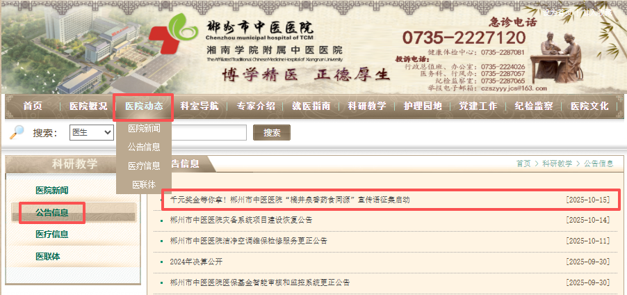3.郴州市中醫(yī)醫(yī)院官網(wǎng)投稿: